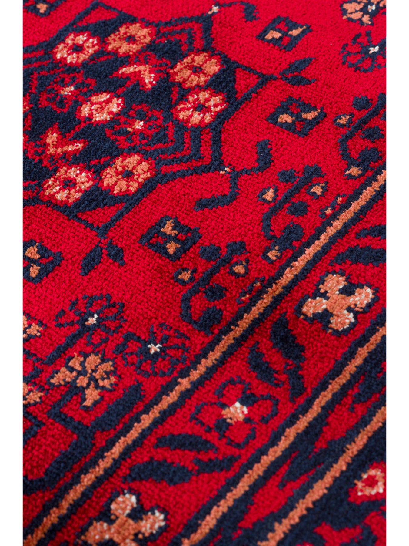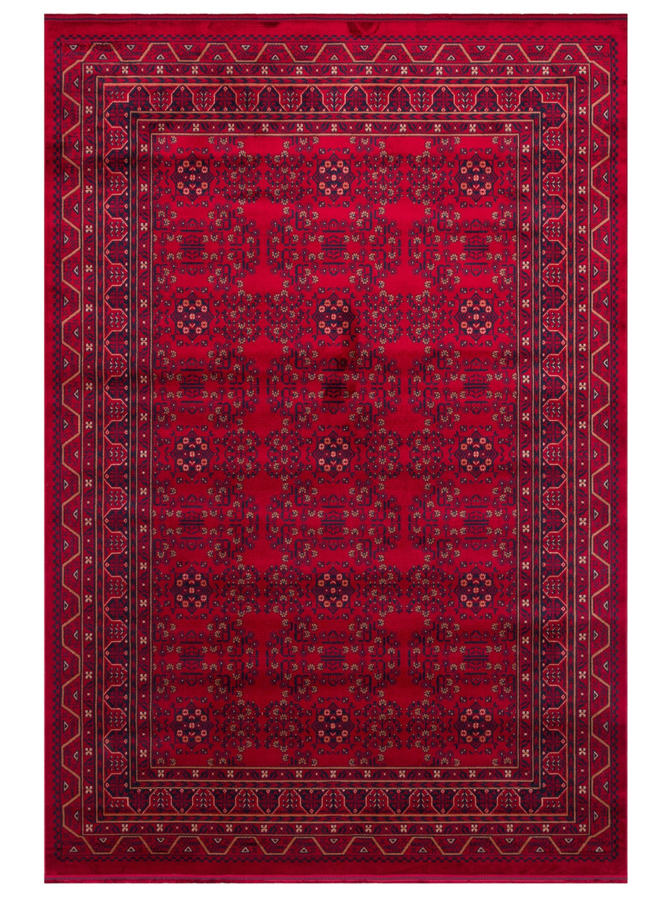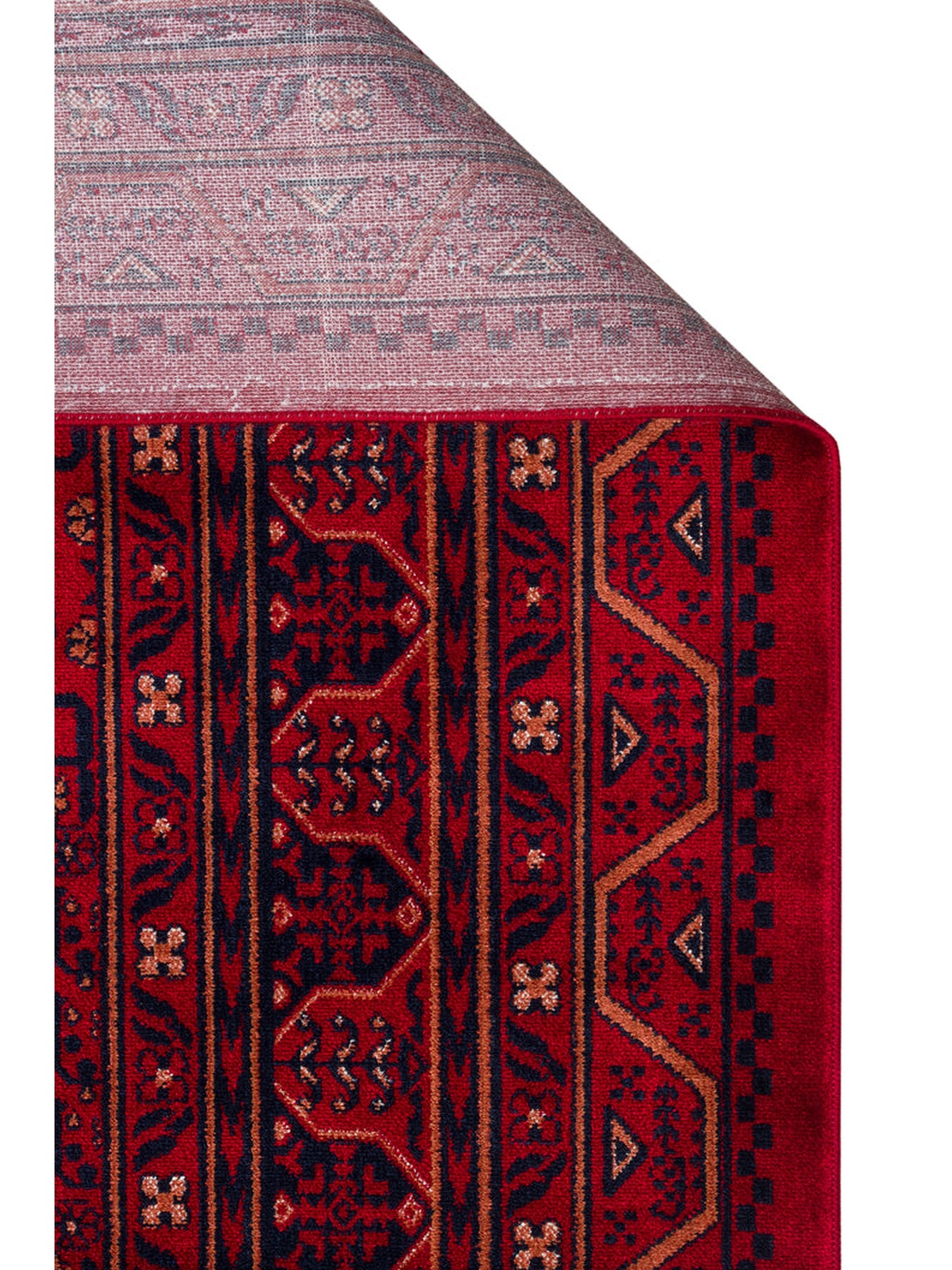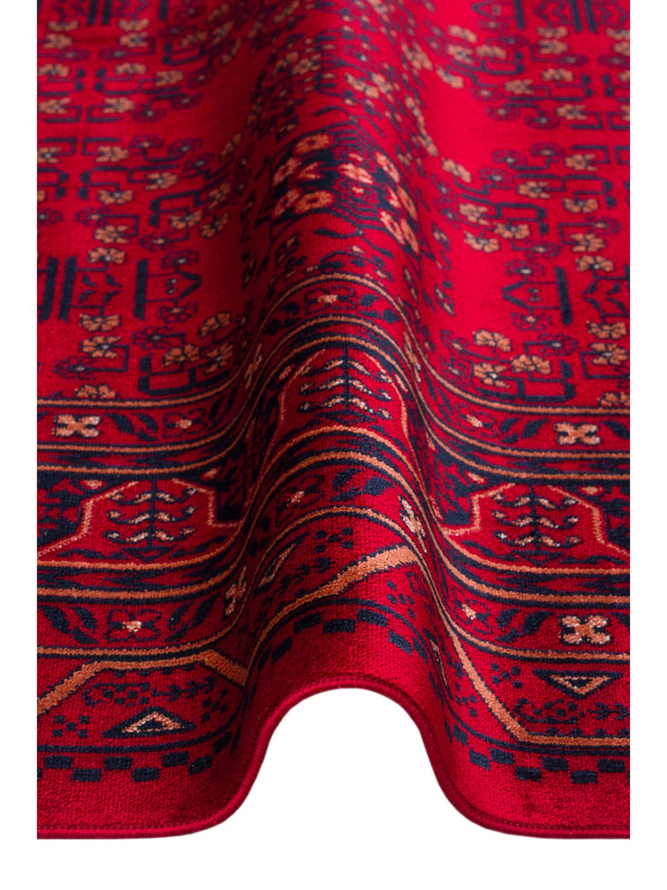 Paghman Series Afghan Patterned Viscose Dense Woven Non-Slip Based Thin Machine-Made Carpet 04 RED